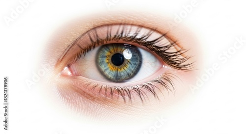 © ARIF, Obraz premium Close-up of a human eye with blue and green iris.