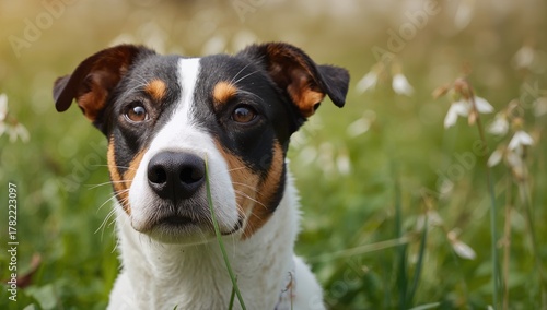 Fototapeta premium Close-up of a Jack Russell terrier's muzzle, highlighting intricate fur textures,