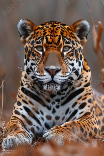 © Tetiana Kasatkina, Obraz premium Close-up of a jaguar lying on the ground
