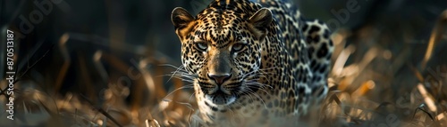 © Aris Suwanmalee, Naklejka premium Close-up of a jaguar's face with a blurred background.