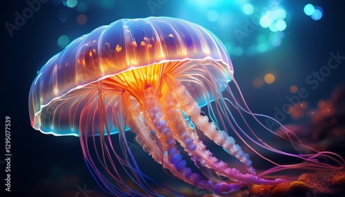 Fototapeta premium Close-up of a jellyfish tentacle, with a bioluminescent glow illuminating its...