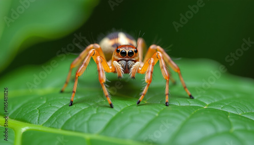 © Leah, Fototapeta premium Close-up of a Jumping Spider on a Leaf