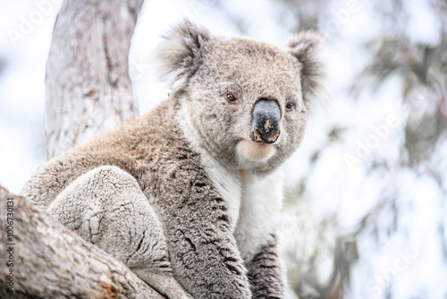 Obraz premium Close-Up of a Koala Resting on Tree Trunk