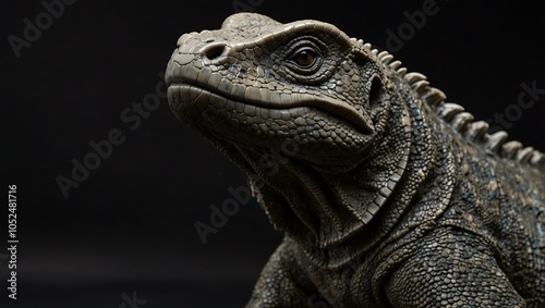 Fototapeta premium Close-up of a Komodo dragon marble statue against a plain black background.