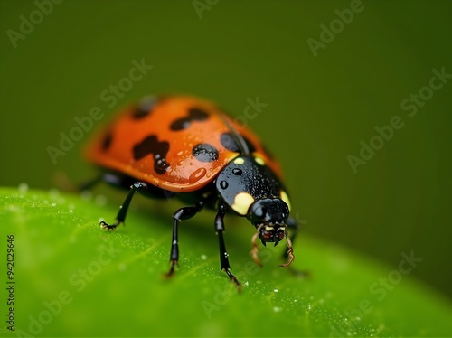 Fototapeta premium Close-Up of a Ladybird Beetle on a Green Leaf