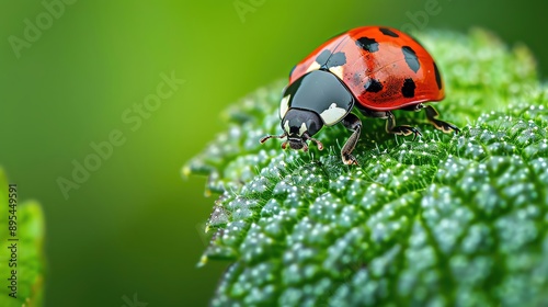 © Pattypatt, Fototapeta premium Close-up of a ladybug on a green leaf, with a natural background.