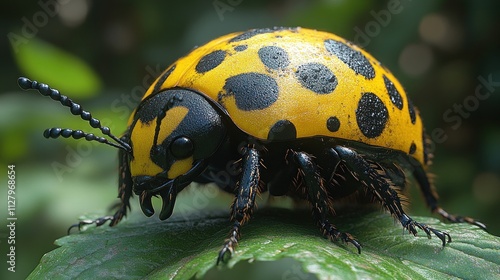 © AFFANYUDA, Fototapeta premium Close-up of a ladybug on a leaf.