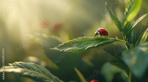 Obraz premium Close-up of a Ladybug on a Leaf in a Lush Green Environment