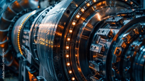 Fototapeta premium Close-up of a large steam turbine in a power plant, showcasing intricate...