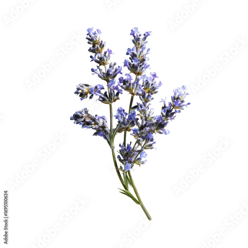 © Haer, Naklejka premium Close-up of a lavender sprig. Clusters of vibrant violet-purple flowers on a delicate stem are highlighted against a pure black background. Sharp focus on the blossoms