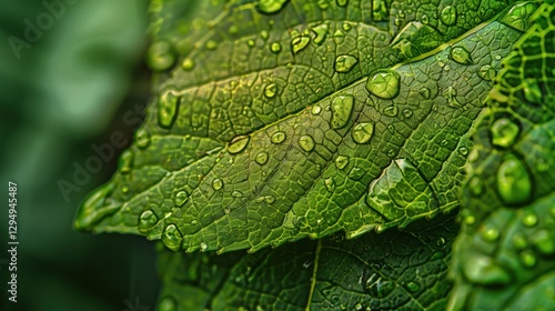 © sticker2you, Fototapeta premium Close-up of a leaf with raindrops macro photography