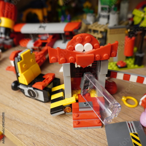 © Everyday Frame, Obraz premium Close-up of a Lego build resembling Dr. Eggman's robot with red and yellow accents