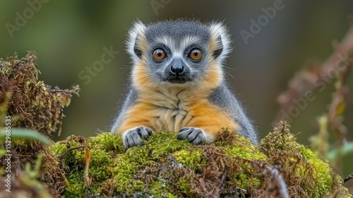 © MUCHAMAD, Naklejka premium Close-up of a lemur on mossy log