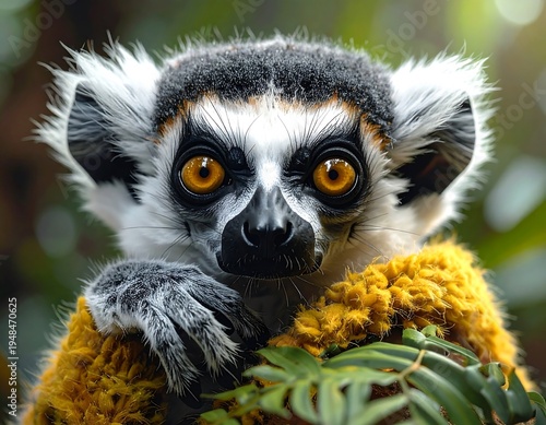 Naklejka premium Close-up of a lemur with vibrant eyes