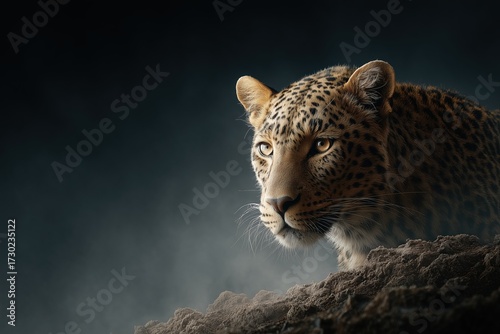 Obraz premium Close-Up of a Leopard in a Dramatic Setting