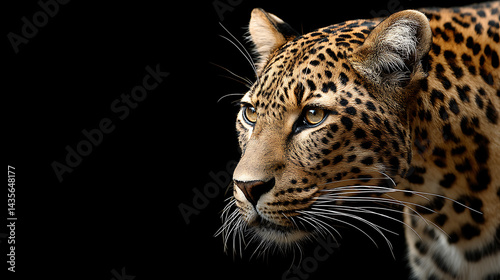 © Anita, Naklejka premium Close-up of a leopard's face showcasing its striking features against a black background