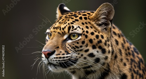 Naklejka premium Close up of a leopards face with distinctive markings against blurred background