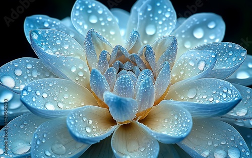 © Adama, Fototapeta premium Close-up of a light blue dahlia flower with water droplets