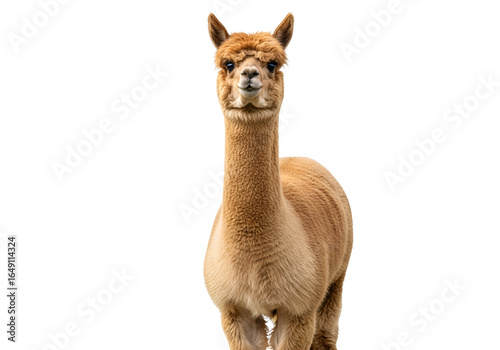 © Sasori, Obraz premium Close-up of a light brown alpaca against a black background.