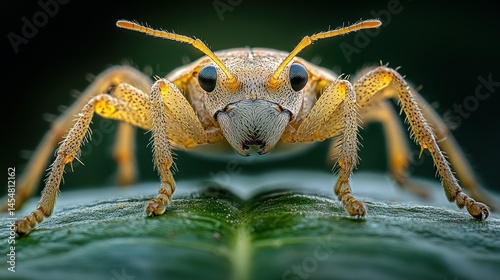 Naklejka premium Close-up of a light-brown insect on a green leaf, with detailed features and...