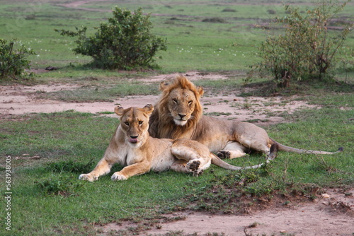 Fototapeta premium Close-up of a lion and lioness resting after mating