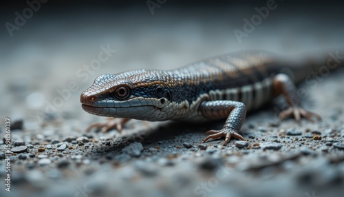 © Kitta Studio, Naklejka premium Close-Up of a Lizard Crawling on a Textured Surface in Nature