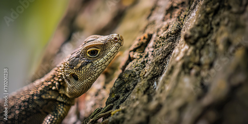 © Nedrofly, Naklejka premium Close Up of a Lizard Perched on a Tree Branch