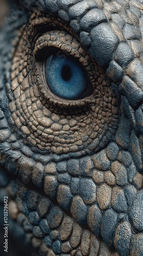 © Michael, Fototapeta premium Close-up of a lizard's textured skin and striking blue eye in a natural setting during the day