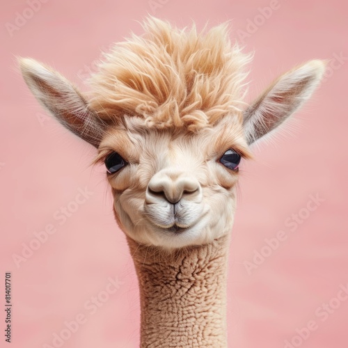 Obraz premium close up of a llama with pink hair, Animal on a plain background, copy space...