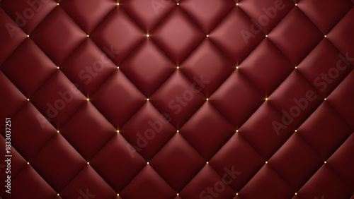 Obraz premium Close-up of a luxurious, deep red, diamond-patterned, tufted upholstery with...