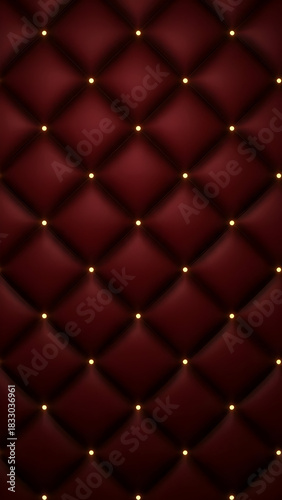 Obraz premium Close-up of a luxurious, quilted burgundy velvet surface with golden button...