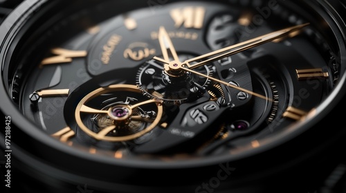 Fototapeta premium Close-up of a luxury watch showcasing intricate mechanics and elegant design.