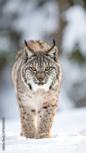 © Ujefrics, Obraz premium Close-up of a lynx walking in snowy forest