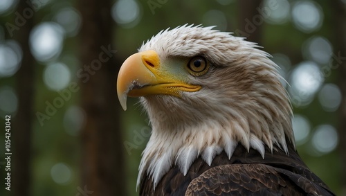 Obraz premium Close-up of a majestic bald eagle in the forest