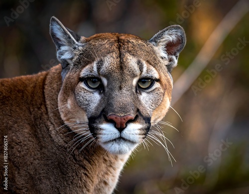 Naklejka premium Close-up of a majestic cat with amber fur, captivating eyes, and a focused...