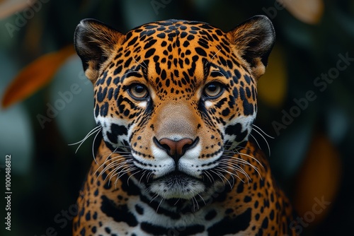 Obraz premium Close-up of a majestic jaguar in its natural habitat, showcasing its powerful presence.