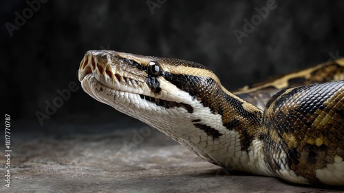 © Thinnawat, Obraz premium Close-Up of a Majestic Python Snake Looking Fierce in a Studio