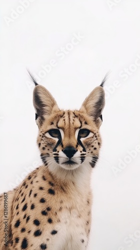 © Felomena, Obraz premium Close-up of a majestic serval against white background