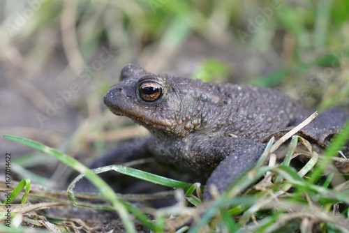© Henk, Fototapeta premium Close up of a male European common toad , Bufo bufo in the garden