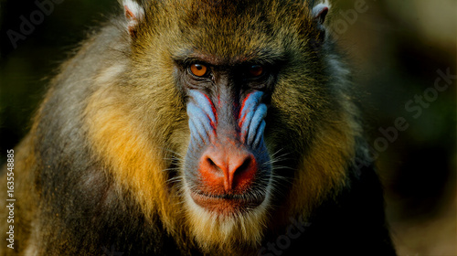 © Abdullah, Fototapeta premium Close up of a male mandrill with striking facial markings and fur colors
