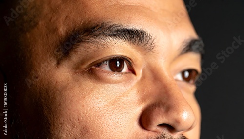 © Maula, Fototapeta premium Close-up of a man's face, eyes looking off to the side, dark background