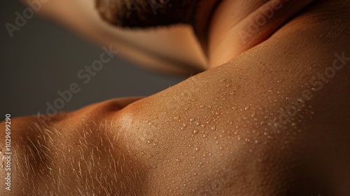 © Imsuniyah, Fototapeta premium Close-up of a Man's Sweaty Shoulder