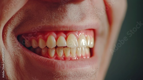 © Iswanto, Obraz premium Close-up of a man's teeth, showing gum recession.