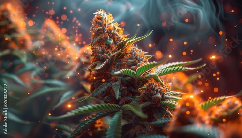 Fototapeta premium Close Up Of A Marijuana Bud With Smoke And Sparks