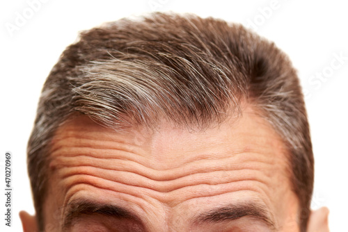 © Frame Fusion, Fototapeta premium Close-up of a mature men forehead with wrinkles.