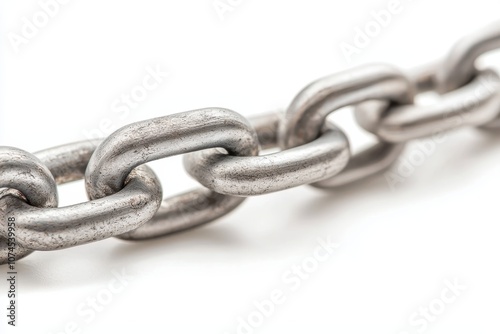 Fototapeta premium Close-up of a metal chain link with a shiny surface on a white background.