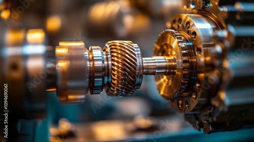 Obraz premium Close-up of a metal gear being machined on a lathe