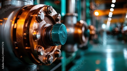 Obraz premium Close-up of a metallic industrial component, displaying intricate details and...