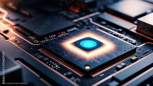 © demzp, Obraz premium Close-up of a modern computer processor, revealing its complex architecture and advanced engineering.