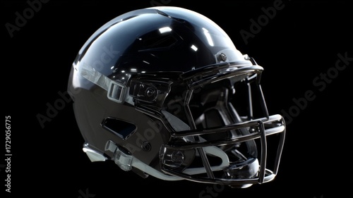 © Nasreen, Naklejka premium Close-up of a modern football helmet on a stadium field, ready for game action under bright stadium lights, highlighting protective gear and sports equipment for football players